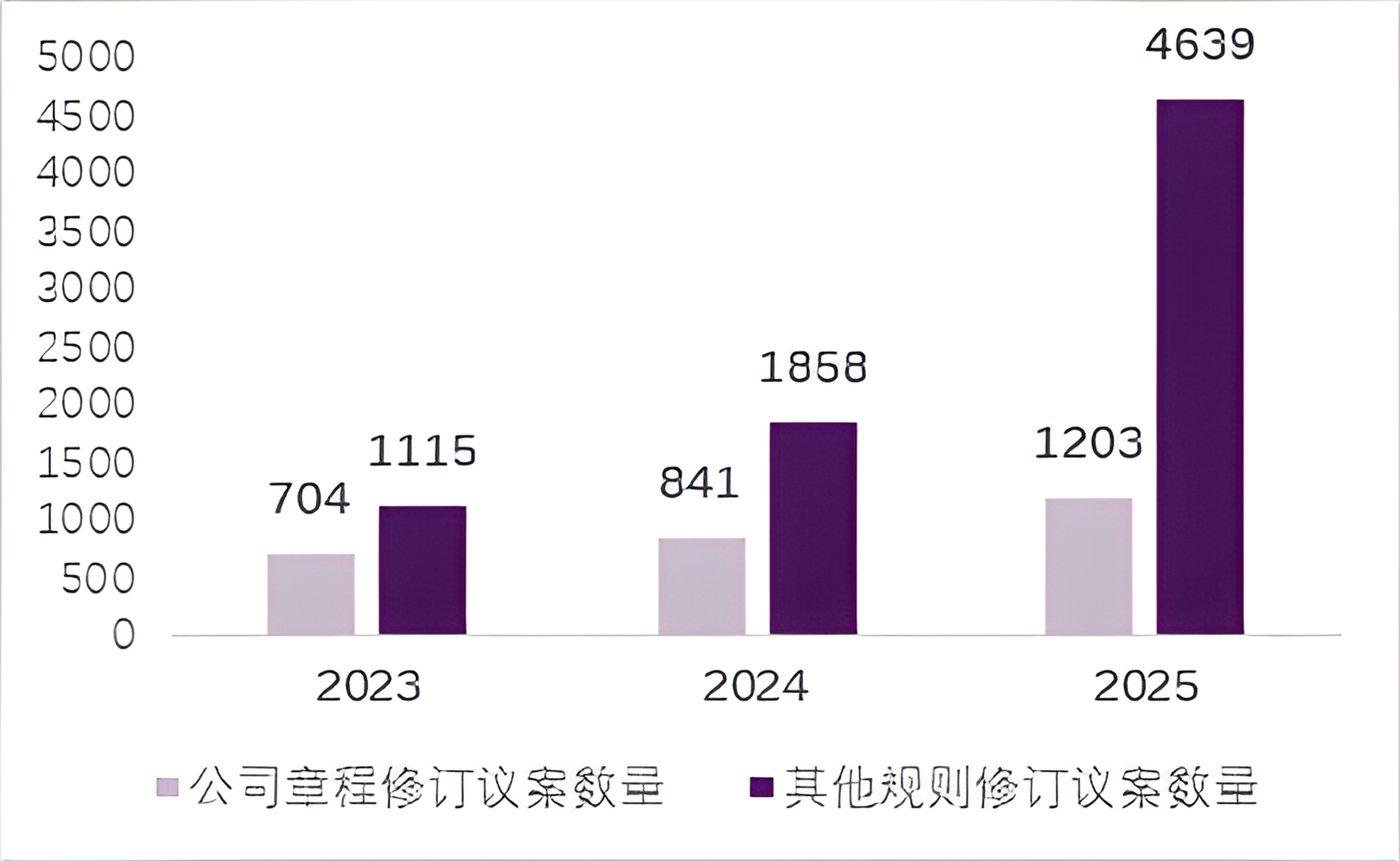 2025年可以说是中国上市公司治理的“制度建设大年”。证监会及沪深交易所层面密集更新了多项基础性规则,包括《上市公司章程指引》《上市公司治理准则》等核心文件。为了响应监管要求,上市公司也随即启动了内部各项制度与文件的全面修订。根据紫顶的数据统计,2025年涉及修改公司规则的股东大会议案数量较2024年大幅增长了约116%。这些制度的集中“翻新”,进一步夯实了中国资本市场的公司治理基础。